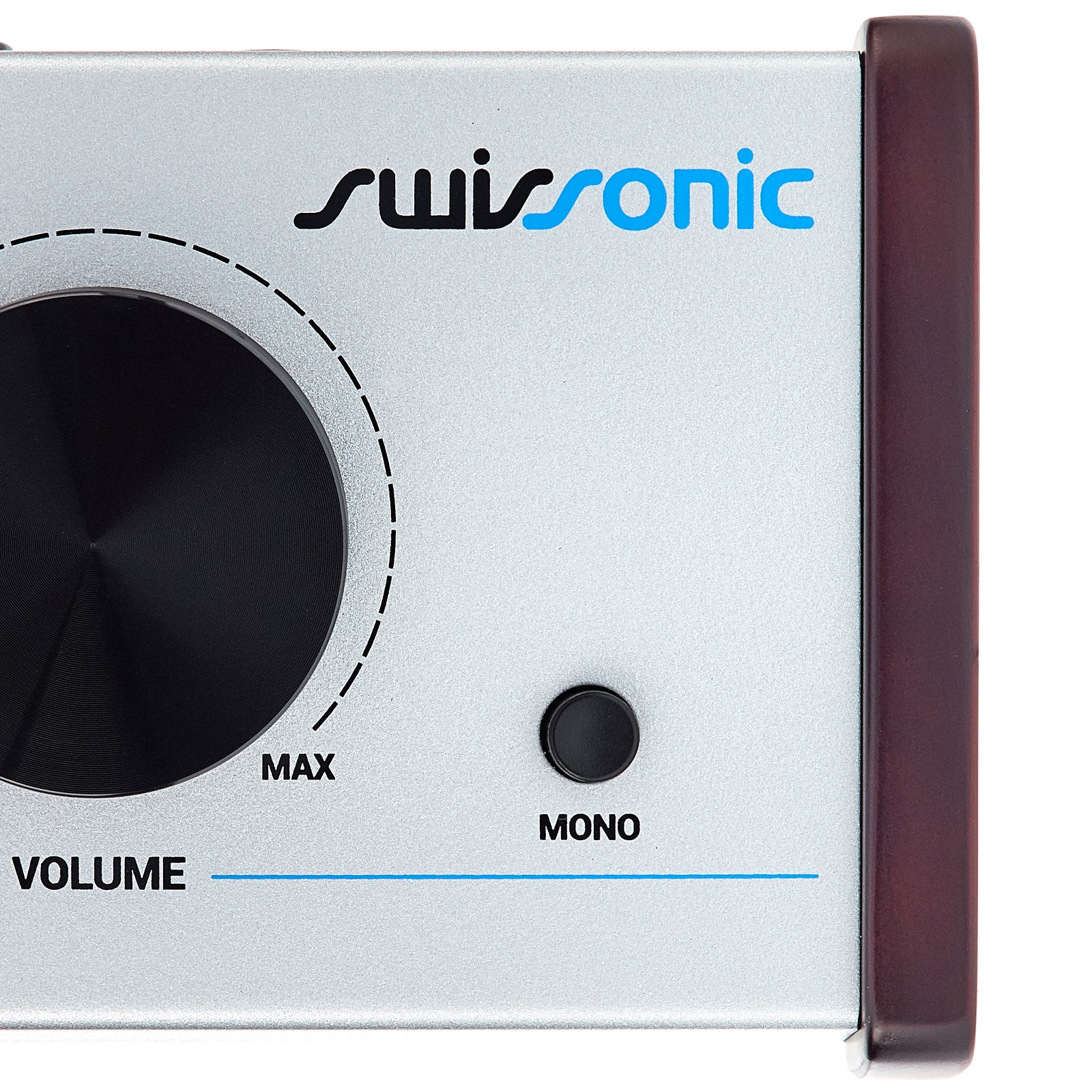 The Swissonic M-Control is an affordable passive monitor controller whose design focuses on the features that are essential for such devices. It controls the monitoring volume (including a mute function) and offers the option of mono summing, but leaves advanced functions such as input switching for different sources and output switching for multiple monitoring options to its big brother, the Swissonic M-Control +. Likewise, talkback, dim, and bass management for connected subwoofers have also been left out in order to make this model as "back to basics" as possible. The Swissonic M-Control does, however, provide a solid basis for those who appreciate the directness of tangible controls when adjusting their monitoring volume.