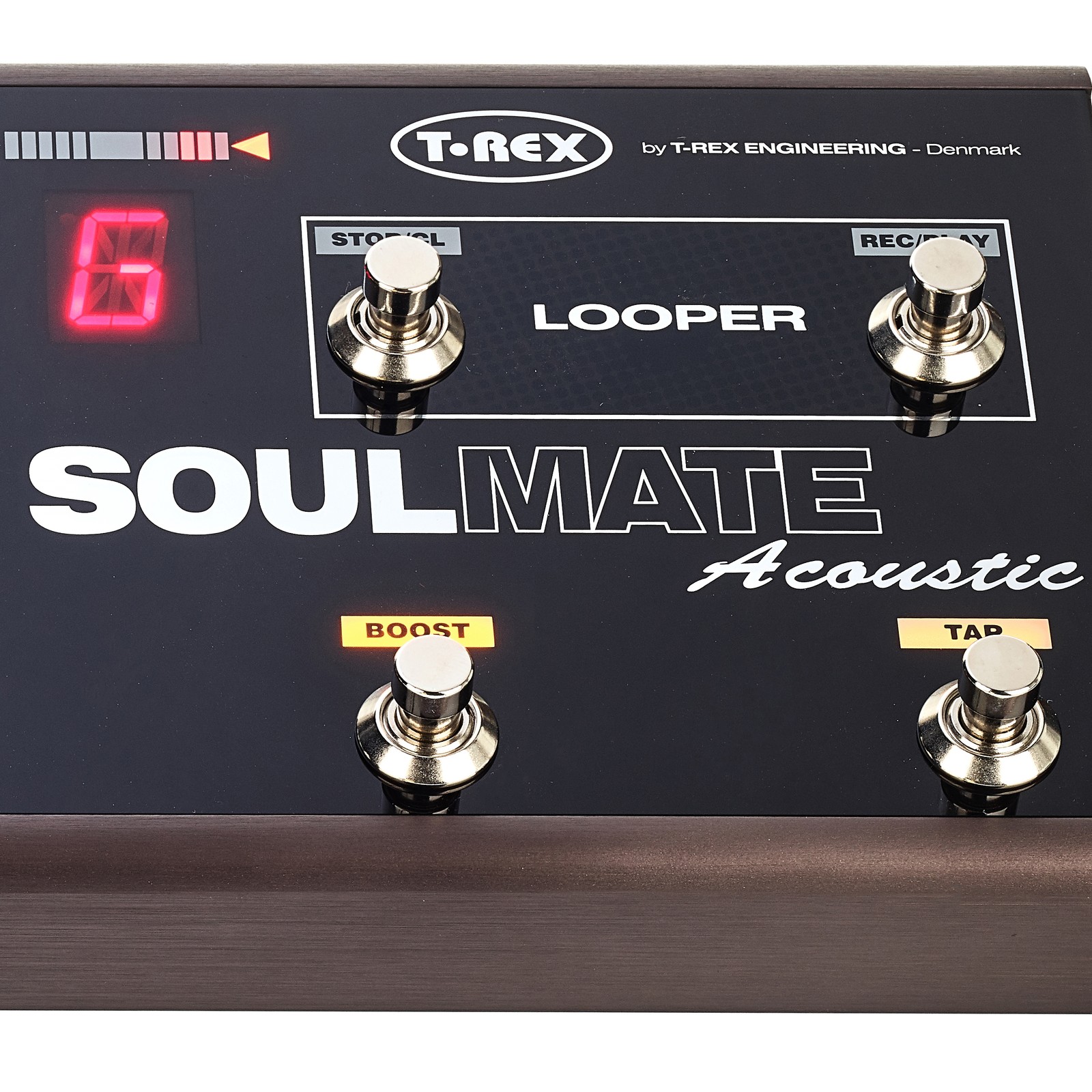 The quality of today’s acoustic guitar pickups is very high, but these are still subject to certain limitations unless a little external help is provided, and this is where the T-Rex Soulmate Acoustic comes into play. The Soulmate provides a practical selection of effects to enhance the player’s performance, and the whole concept is tailored towards live use, where guitarists will greatly benefit from both the boost function and the feedback kill switch. Thanks to its three-band semi-parametric EQ, the Soulmate gives musicians a powerful tool for shaping their sound, and the compressor, an often-underestimated feature, is perfect for creating a full sound as well as extremely easy to use since it features only two controls. Finally, the phrase looper is a clear nod from T-Rex towards acoustic guitarists who perform solo and create their own backing tracks.