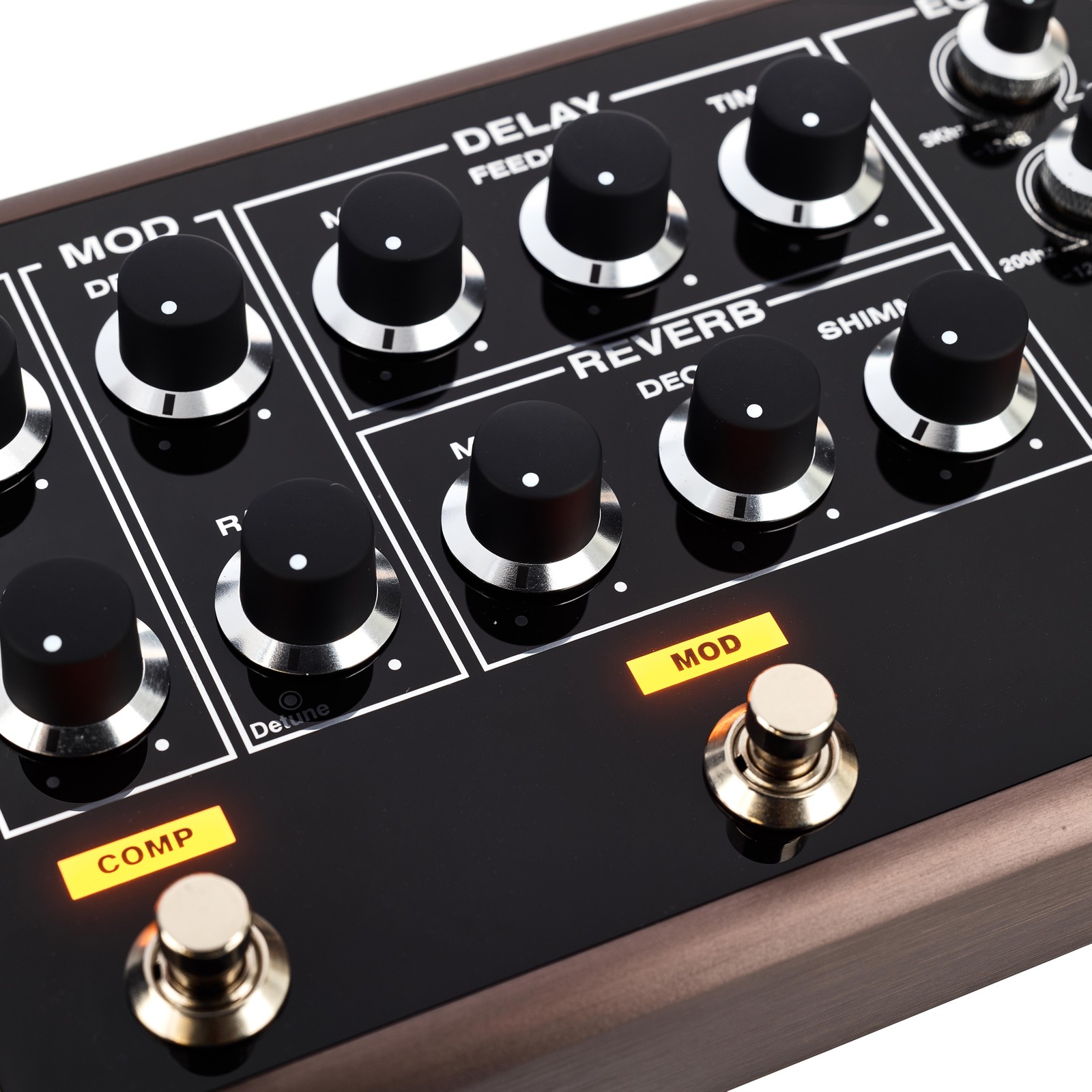 The T-Rex Soulmate Acoustic utilises a three-band semi-parametric equaliser and a compressor to shape the sound of the guitar, while the adjustable boost function provides that extra volume needed for solo playing. The reverb unit only offers a hall-style setting, but what is lacking here in terms of variety is made up for in quality, and the reverb can be further enhanced using the “shimmer” control – itself a clear foray into effects territory – for more ethereal sounds. The palette is completed with delay (including a tap tempo feature) and chorus options. The looper is also much more than a simple bonus feature: It can be used to record up to five minutes of material in stereo, which can be combined with delay to create some very impressive soundscapes. A tuner and an automatic feedback kill switch are also included.