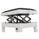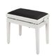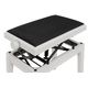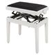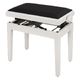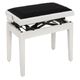 Thomann KB-77 WHM piano bench; frame color: white matt; double cross precision lifting mechanism; height adjustable from 50 - 61 cm; seat: 520 x 300 mm; seat upholstery: velor black; weight: 13 kg; material: wood; For perfect performance of the precision lifting mechanism, a user weight of 40-130 kg is recommended; Additional seat pads available separately